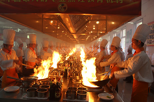 不同于其他厨师培训机构过于单调的教学方法,郑州新东方烹饪学校增加情景教学模式,活跃课堂氛围,收到了良好的教学效果。在模拟酒店上课,同学们分成若干小组,每个小组根据提前设计好的菜谱进行分工,烹制菜肴,然后由老师统一打分点评。这种模拟情境的互动式教学获得同学们的一致好评,让同学们提前适应酒店的后厨工作流程,为以后进入酒店快速融入工作环境打下坚实的基础。