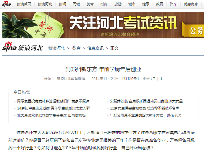 什么行业才是好行业?新东方70余万定向就业学子证明,学厨师才是硬道理!新东方无数成功创业学子证明,厨师是个好行业。
