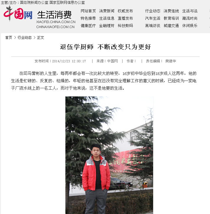 曾经的军人,现在的厨师,他叫司马营彬,在郑州新东方烹饪学校。