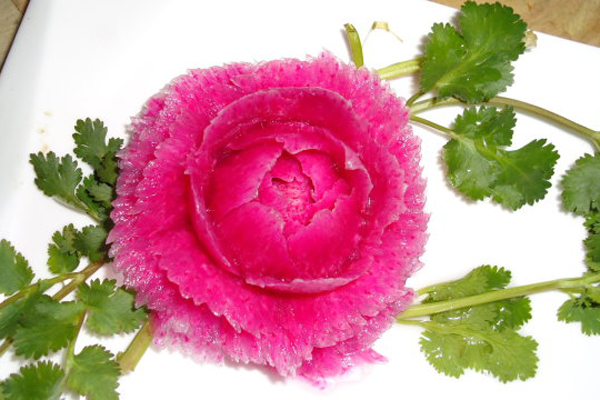 红心萝卜中富含花青素,不但能给食物提供美丽的颜色,还具有很强的抗氧化性,能够抵抗衰老,增强血管弹性、增进视力,让皮肤更光滑。另外红心萝卜中铁的含量要高于其他萝卜。红心萝卜清脆爽口,常用于凉拌或者腌泡菜。另外,郑州新东方教师需要提醒的是,花青素在酸性条件下稳定,因此做凉菜时加点醋。