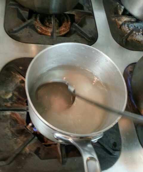2清水,糖,小火煮到糖溶化(记住一定要烧开)。