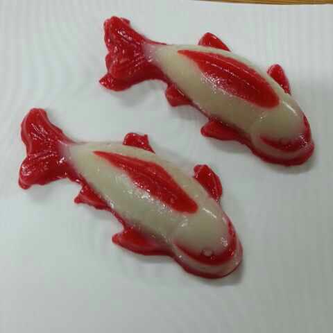 原料:糯米粉180克.澄面10克.生粉10克清水、椰浆(不是椰子汁,是浓椰浆.这样香味才浓)1瓶,白糖100克,还需要两个鲤鱼模具。