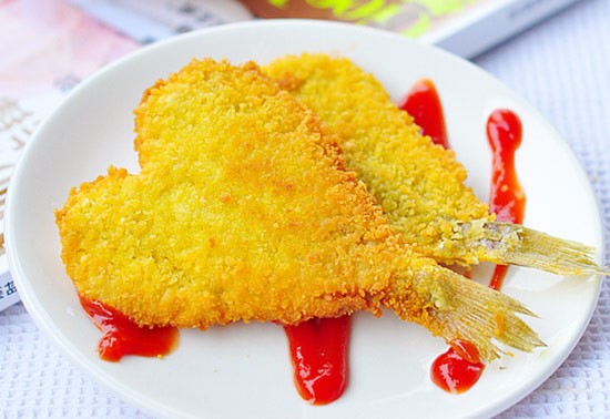主料:黄鱼 (5条) 鸡蛋 (一个) 面包糠 (100g)