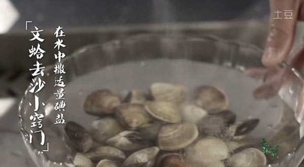 文蛤泡水去沙(文蛤去沙小窍门:在水中撒适量碘盐)