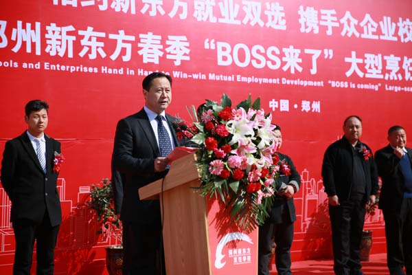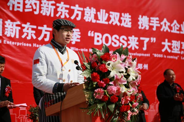 阳春三月万物新,紫气东来迎嘉宾。在这春暖花开,万物更新的时节,郑州新东方烹饪学校迎来了2016年春季“BOSS来了” 大型烹饪人才招聘会。郑州市人力资源和社会保障局的领导、郑州新东方烹饪学校的领导以及50余家新东方校企合作企业的代表参加了此次招聘会的开幕式。