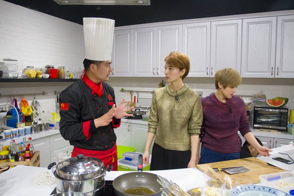 节目开始前,大长腿美女主播李琳,一到节目现场就受到了节目主持人阿诺和新东方名厨武刚教师的热烈欢迎,通过节目前的短暂沟通,亲和力十足的三个人以迅雷不及掩耳之势熟络起来,像久别不见的好友,于是乎三人在节目中迅速结成大大大组合,并从自己名字中取一个字来命名自己在组合中的名字,新奇有趣。