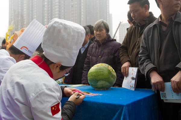 身着厨师服,手拿雕刻刀,郑州新东方烹饪学校的几教师生一亮相,就吸引了现场居民的围观。据悉,郑州新东方烹饪学校是应郑州市民间组织管理办公室邀请参加其组织的进社区便民服务活动,作为文化活动的一个环节进行社区居民互动和技能展示,他们现场展示了西瓜雕刻,花朵雕刻,动植物雕刻等多种雕刻技能,还展示了中国传统的面塑技能。新东方师生们的作品都栩栩如生,惟妙惟肖,引起现场居民的围观和关注,他们纷纷为新东方师生竖起了大拇指。当一些老人和孩子收到新东方的作品作为礼物时,他们脸上露出了灿烂的笑容。