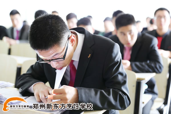 郑州新东方烹饪学校学子认真阅读招聘简章