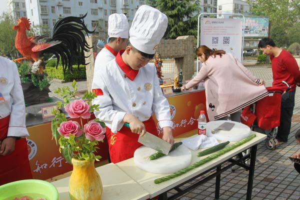 近日,郑州新东方烹饪学校应郑州市民间组织管理办公室的邀请,参加其组织的进社区便民服务活动,几名新东方师生一亮相,就吸引住了居民们的眼光。他们向社区居民展示了新东方师生高超的雕刻、面塑等技能,赢得社区居民阵阵赞叹。