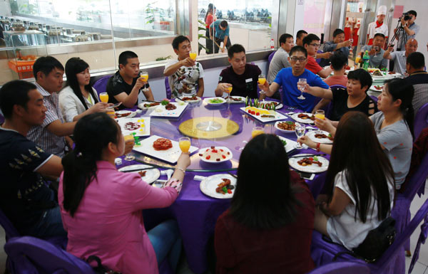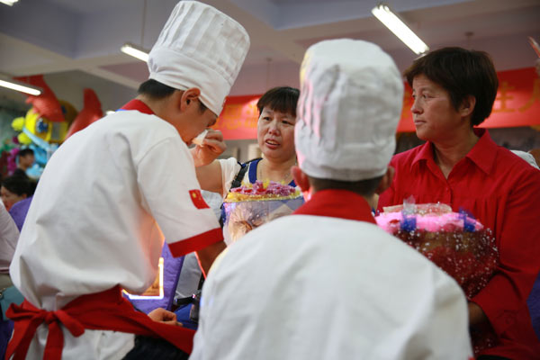 会议结束后,也到了该就餐的时间。这个时候,这群孩子们也到了更忙碌的时间。家长们到了学校的模拟酒店,学生们便一头扎进了实习厅,开始为家长准备起了各种各样的美食。亲自动手,可以表达孩子们对父母的感恩,也可以让家长们检验一下孩子的学习成果。当孩子们端着一盘盘色香味俱全的美食,来到父母身旁,献给他们更亲爱的父母时,父母们的脸上都浮现出了欣慰和自豪的笑容。家长们吃着自己孩子做的美味佳肴,和身边的人说着自己孩子来到新东方以后天翻地覆的变化,整个宴会场氛围温馨喜悦。